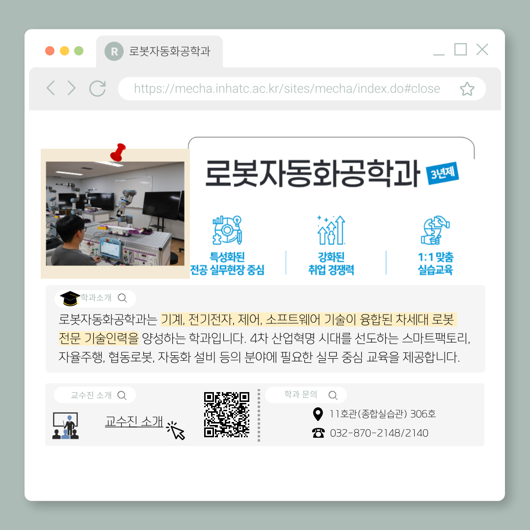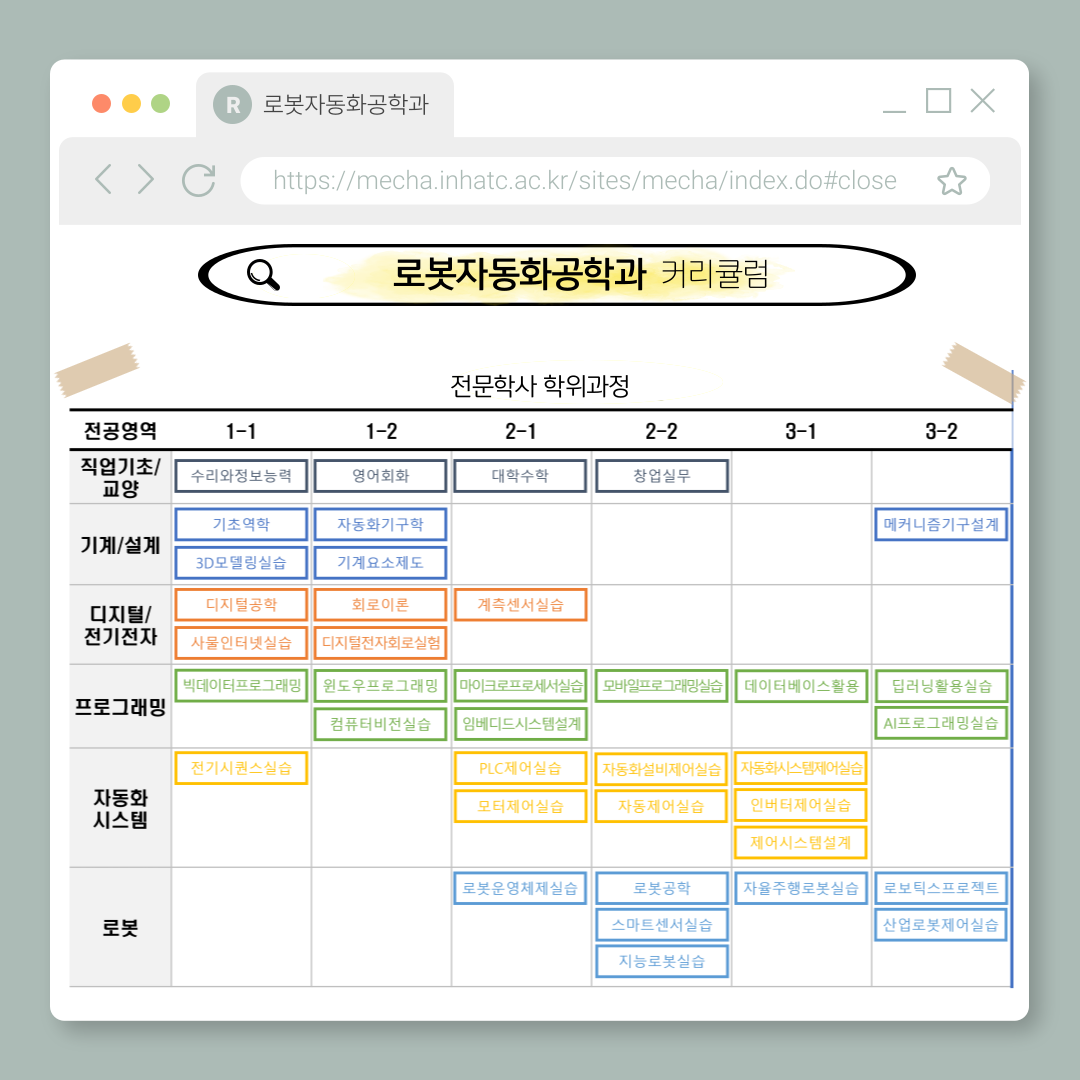 fnctId=bbs,fnctNo=83 URL복사 글번호 103178 2026학년도 로봇자동화공학과 학과명 변경 안내 작성자 정명은 작성일 2025.09.25. 수정일 2025.09.25. 조회수 927 안녕하세요. 2026학년도부터 메카트로닉스공학과가 ‘로봇자동화공학과’로 새롭게 출발합니다. 새로운 학과명과 함께, 전공심화과정 및 커리큘럼도 정비되어 더 체계적인 교육이 제공될 예정입니다. 자세한 학과 소개와 교육과정은 아래 이미지와 학과 홈페이지 참고해 주시기 바랍니다. 첨부파일 1.png 2.png